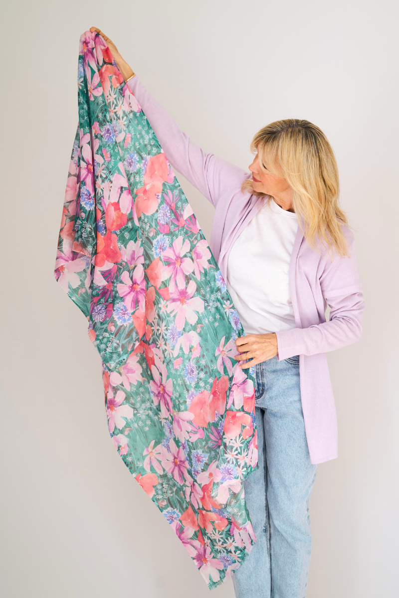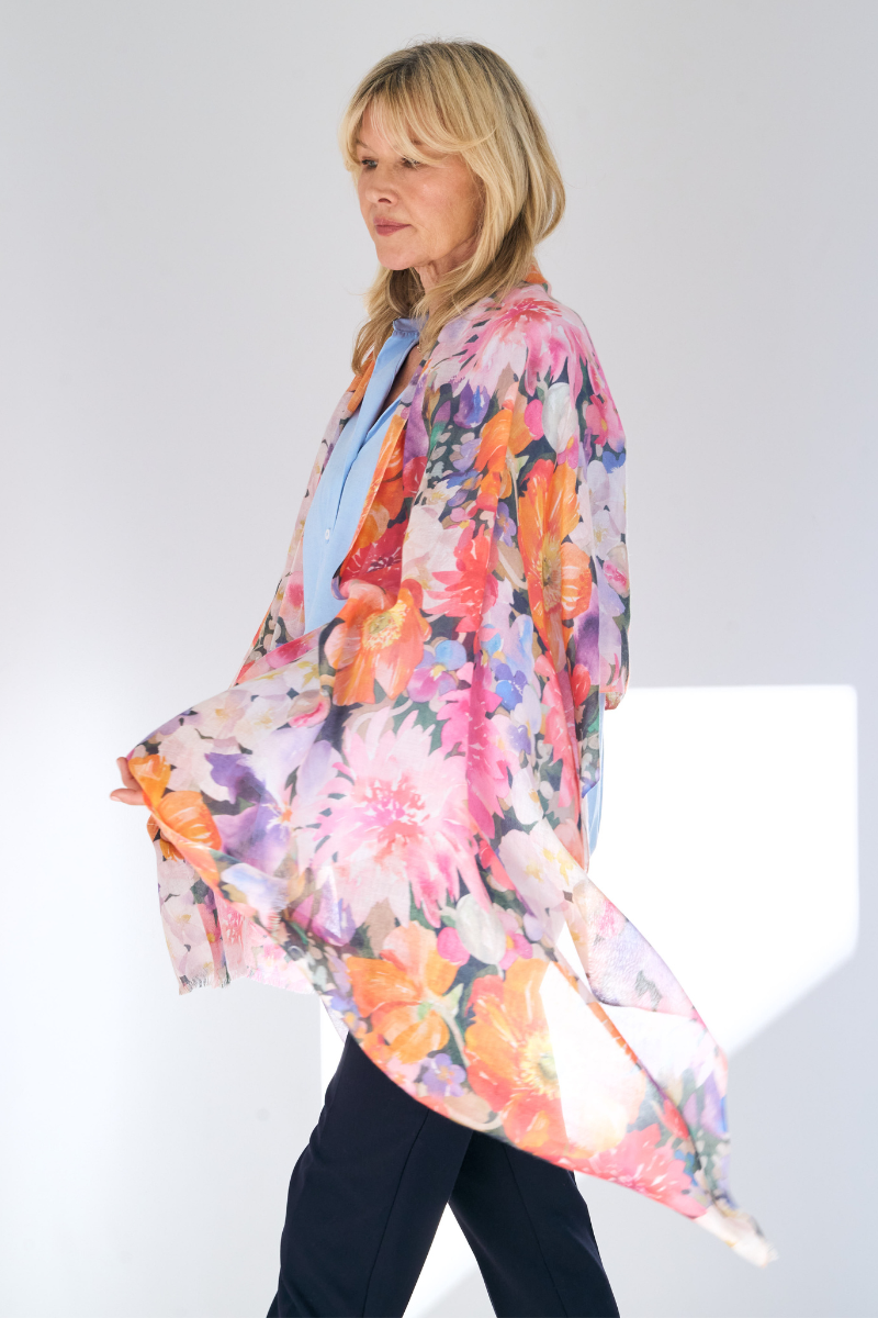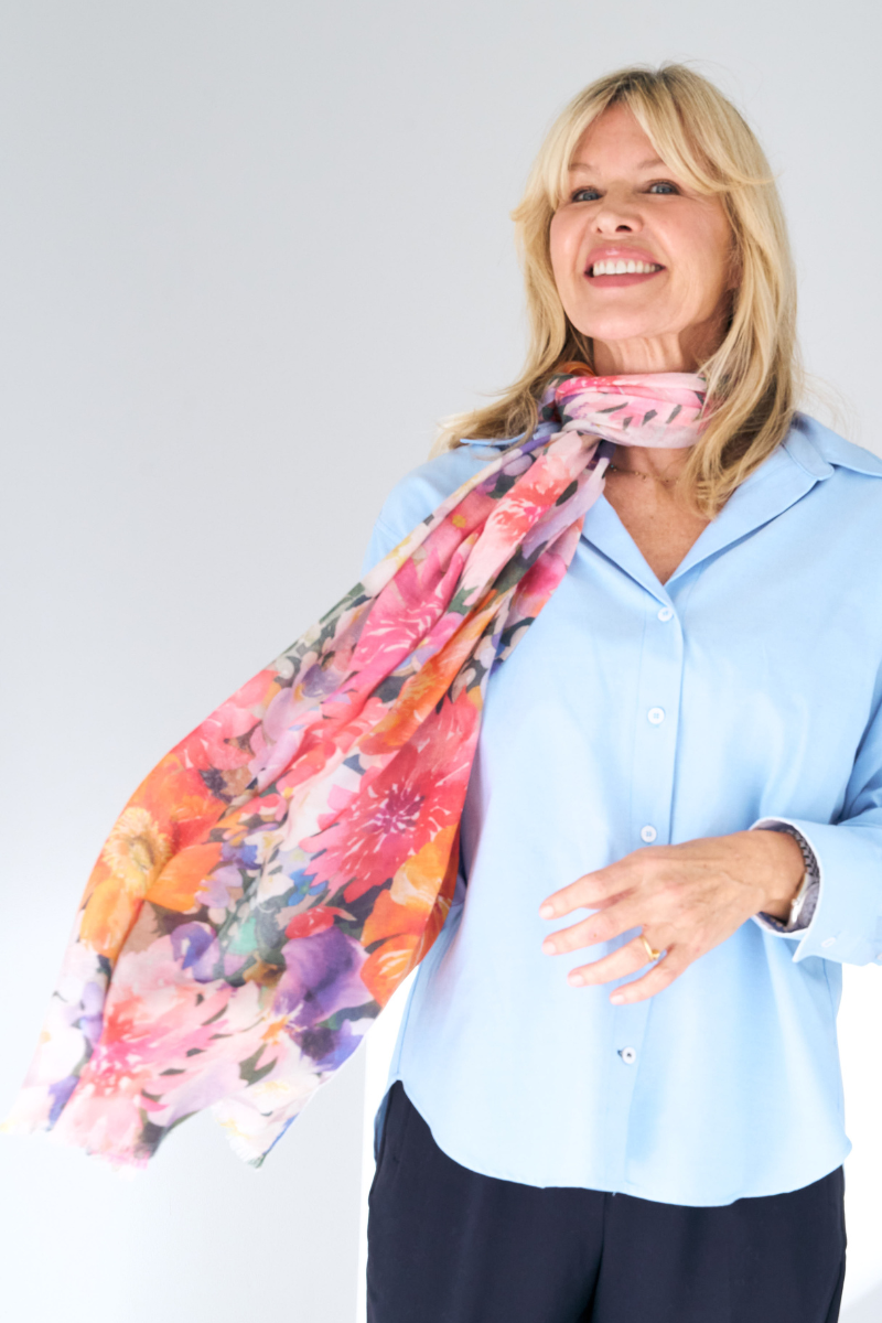 Elevate your look with the Cashmere Silk Neutrals Faded Leopard Scarf, crafted from a luxurious silk-cashmere blend. Featuring a hand-painted leopard print in soft watercolour tones of ivory, grey, camel and washed navy, it’s finished with a delicate border for subtle contrast.